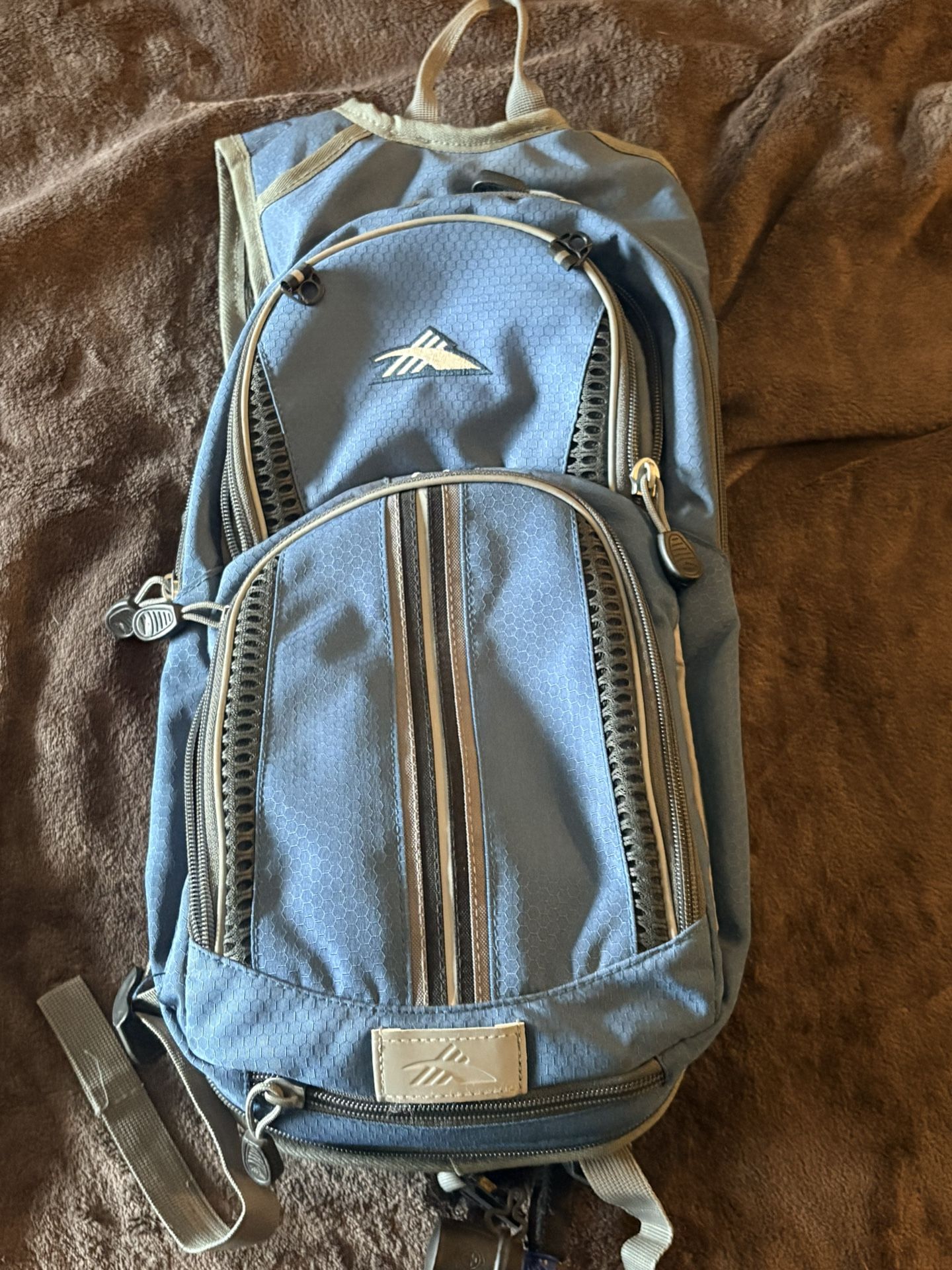 High Sierra hydration backpack in blue and gray. Nonsmoking home. LOCATED in GOODYEAR on INDIAN SCHOOL rd and PERRYVILLE rd. Must pick up, FCFS, No Holds.