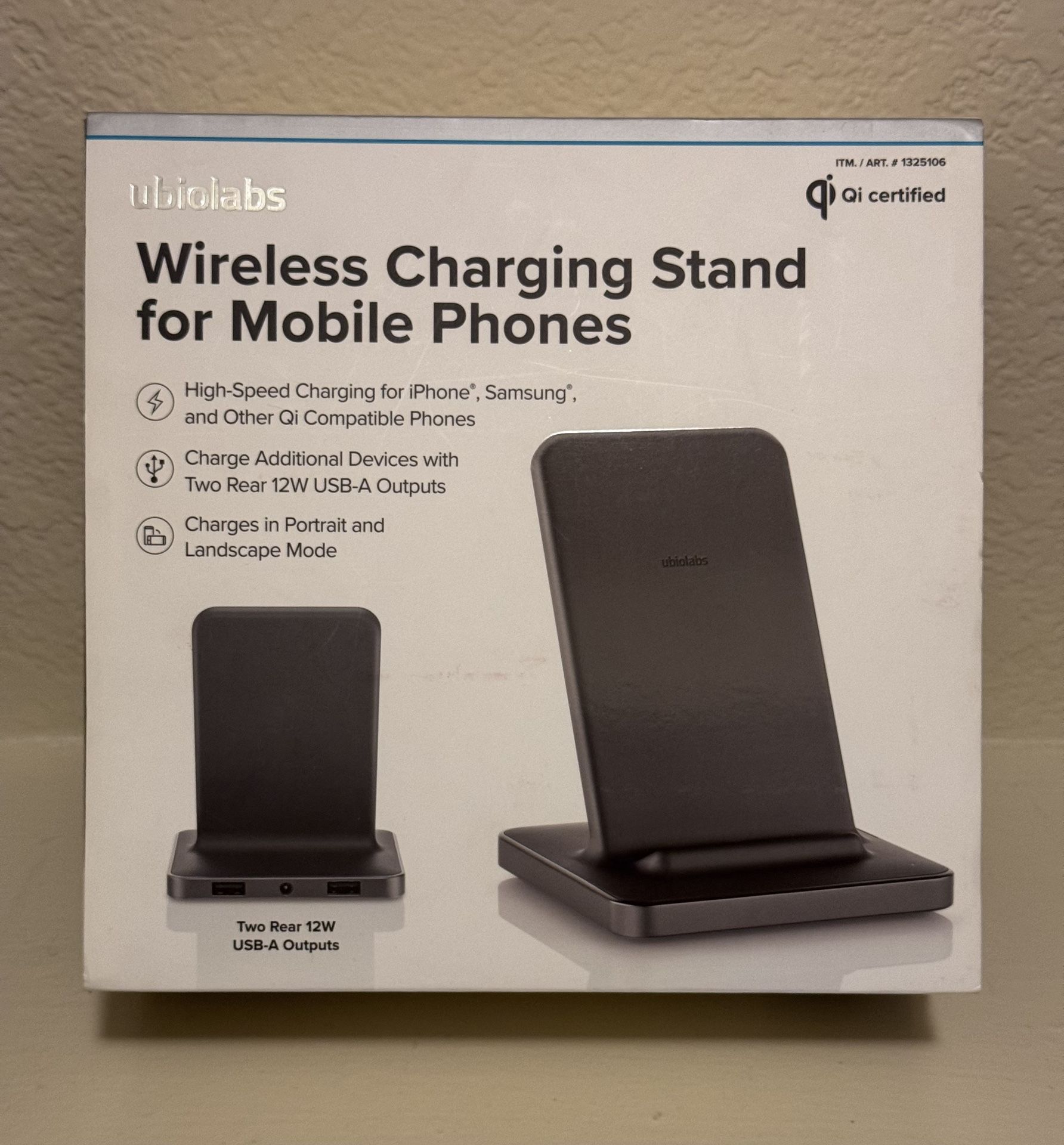 Like NEW!! Ubiolabs universal wireless charging stand - matte black - high speed charging for iphone, Samsung and other Qi compatible phones - charges in portrait or landscape mode - charge additional devices w/2 rear USB-A outputs Cash accepted. Public meetup in Tempe area. DM for any questions