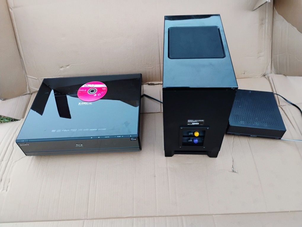 Sony S-Master Digital Amplifier. Model: Sony BDV-IS1000 A/V Receiver with Blu-ray Player built-in All-in-one Blu-ray + 5.1 surround home theater system Blu-ray/DVD player with a 5.1 channel Full HD video & upscaling HDMI 1080p Blu-ray video, 24p True Cinema output Upscales DVDs to near-HD quality via HDMI. Dolby TrueHD, Dolby Digital Plus, and DTS-HD formats for richer, more immersive surround sound Wireless surround rear speakers. BRAVIA Sync, XrossMediaBar menu, Digital Media Port. All speakers included. Wireless rear speakers and receiver included. Remote control and Bluetooth adapter included. Immersive high-quality audio for movies and music. MSRP approximately $1000 USD.