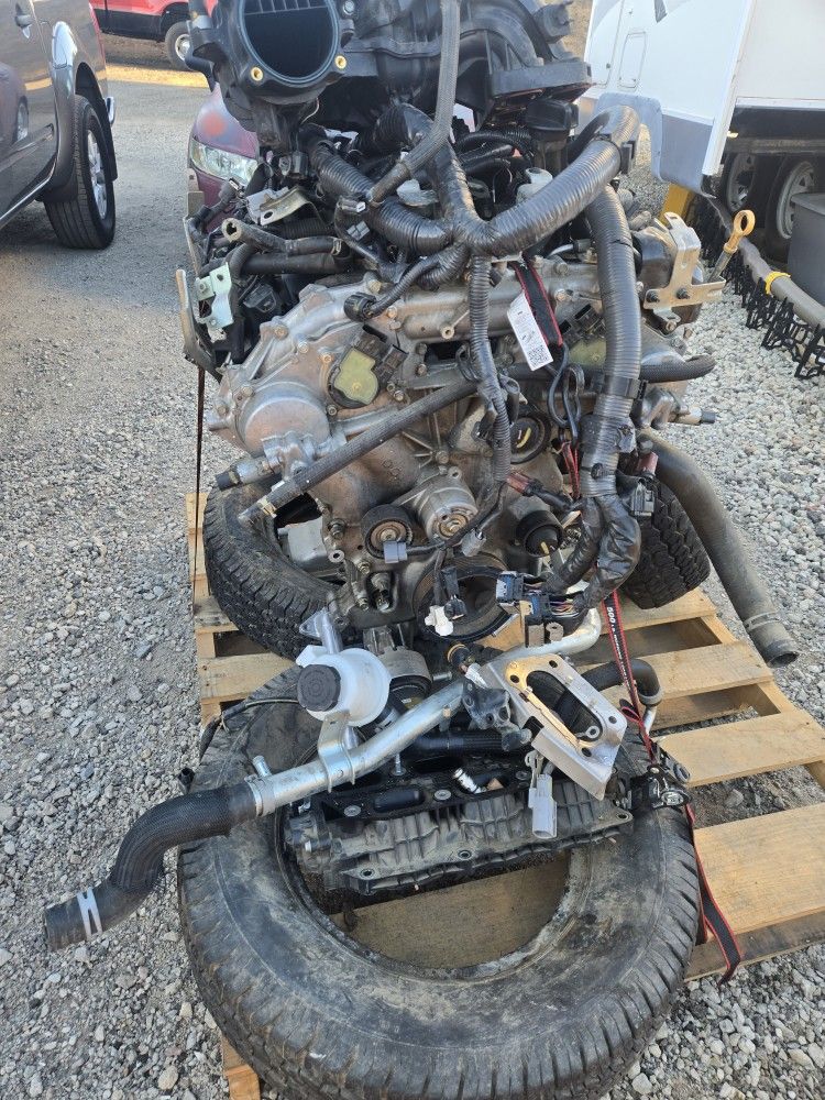 From 2020 nissan frontier Either spun rod bearing or timing chain i swapped my engine rather than fixing it still lots of good parts or good for rebuilding i have a forklift and can put it in the bed of a truck or trailer it was still running, but making kind of a knocking noise