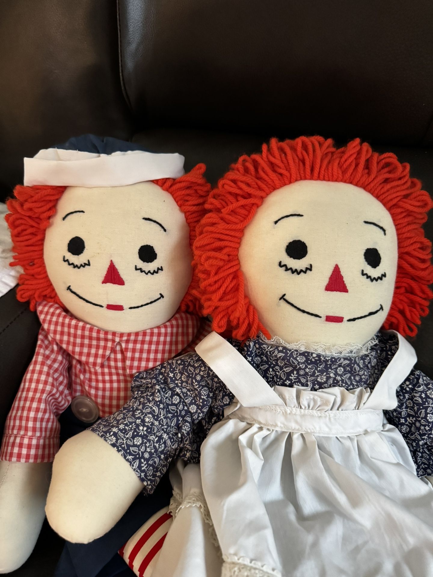 Vintage Hand-made excellent condition Raggedy Ann and Andy dolls . 25” tall. Sold as set only. These would be a great gift to a child in your life.