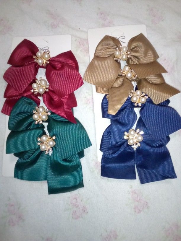 Cute embellished girls bow hair clips , Burgundy set , hunter green set , brown set , navy blue set, each 2 piece sets are $3.00 pickup , shipping is extra