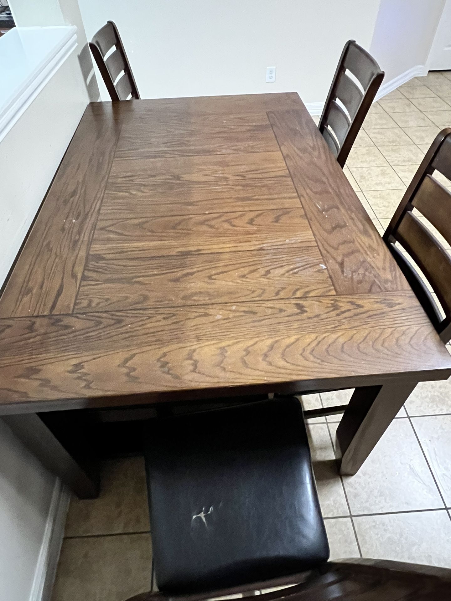 Good condition wooden dinning table with 4 wooden chairs set. Need gone asap