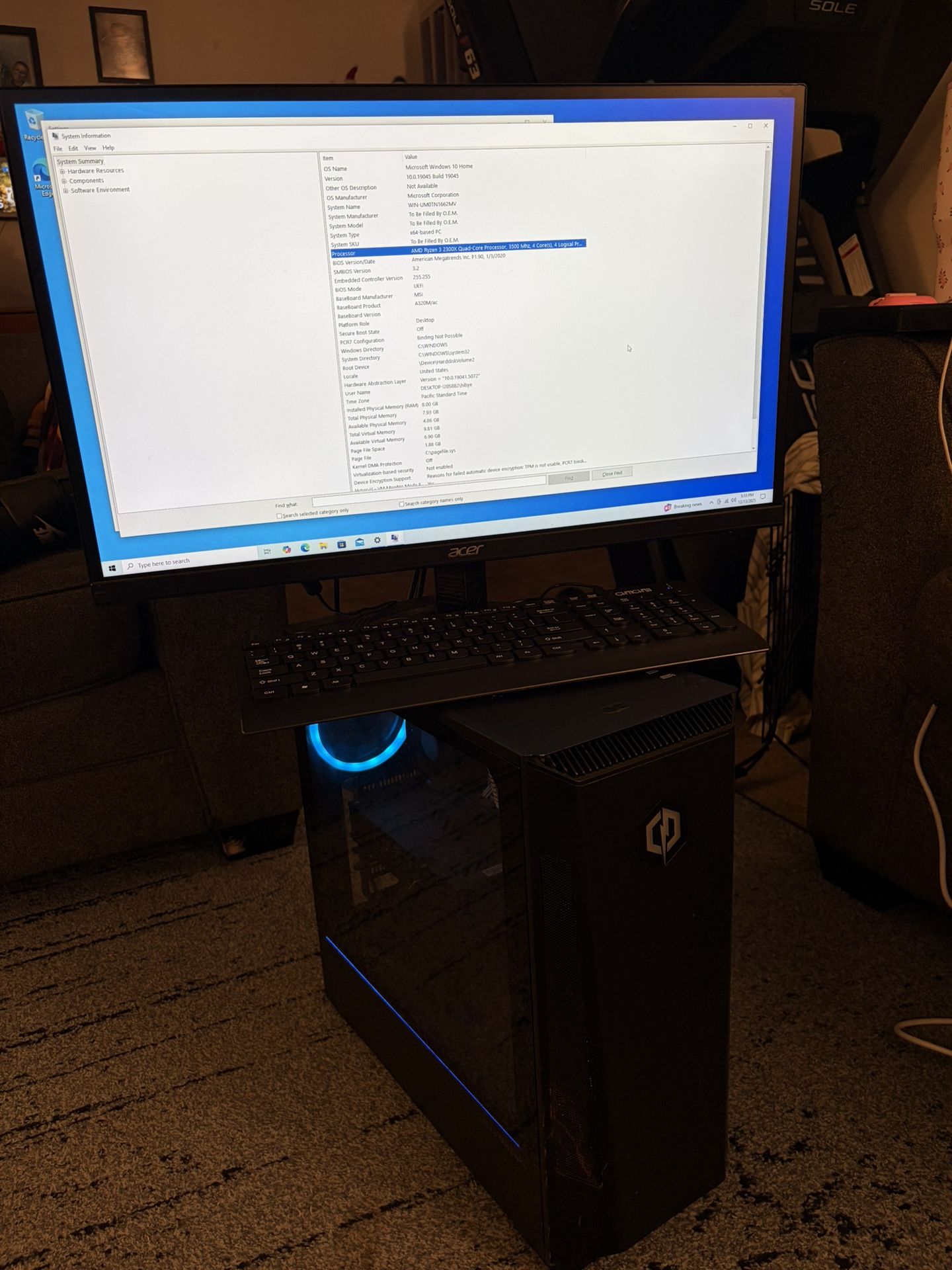 Gaming setup Just erased everything and reset computer 28in Acer Monitor, keyboard and mouse included Processor AMD Ryzen CyberPower 3 2300X Quad Core Specs are in photo