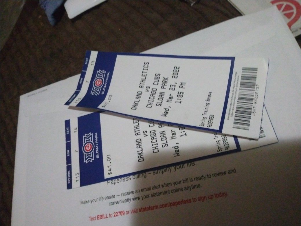 2 Seats For Cubs Vs A'S. Between The Bags 1st base Side:. $100.00