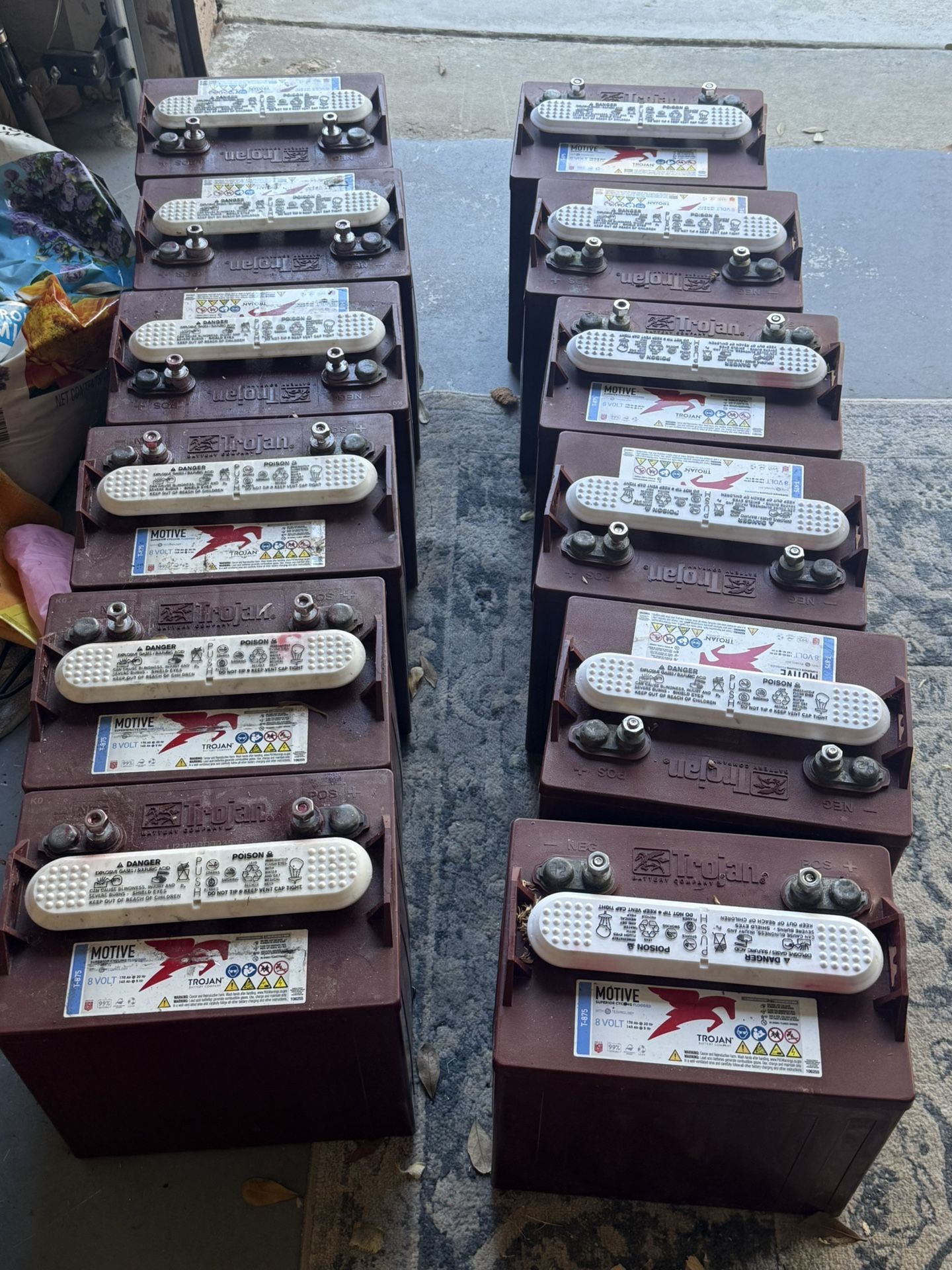 Trojan 8volt batteries. 6 with 2020 date stamp and 6 with 2022 date stamp. All good in working condition removed to upgrade to lithium.