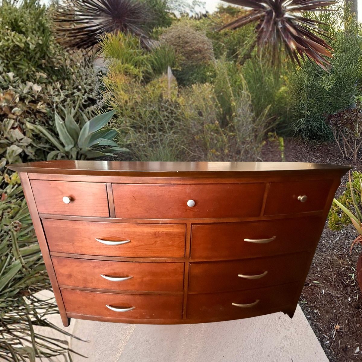 Cherry bedroom furniture set - make your best offer! Must go this week. Tops are in really good shape with some minor scratches but otherwise good condition Wide dresser 4.5 ft L x 1.5 ft w x 3 ft h Night stand 2 ft L x 1.5 ft w x 2.5 ft h Tall chest of drawers 2 ft l x 1.5 ft w x 4.5 ft h