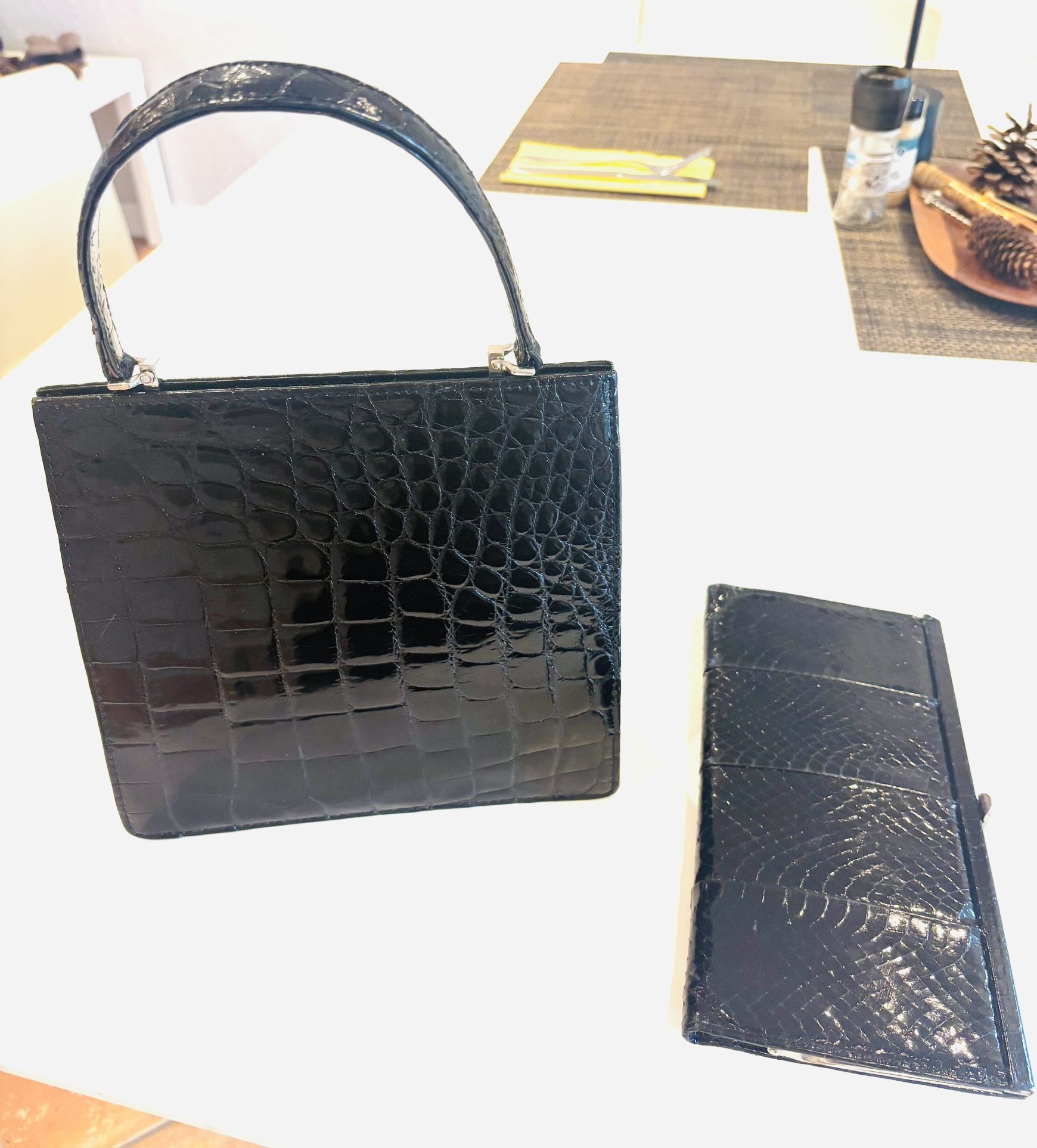 Beautiful elegant black handbag and clutch. Croc leather, antique but like new. Perfect condition.