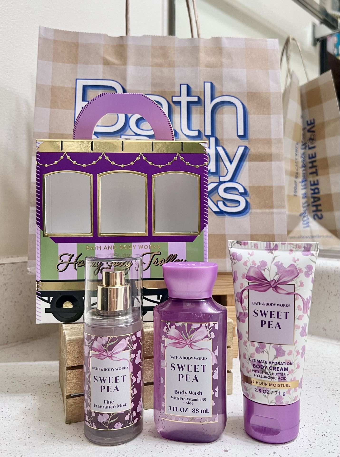 Fragantes: *Into the night *Sweat Pea *Thousand Wishes. * Champagne Toast Gifts include: -Body lotion -Body spray -Shower Gel