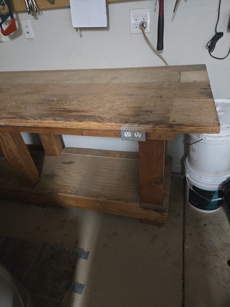 I am selling this work Bench for my father in law. Measurement is 8' length 30" wide and 3' tall. Also has 3 wired in 4 outlet boxes. Make a offer