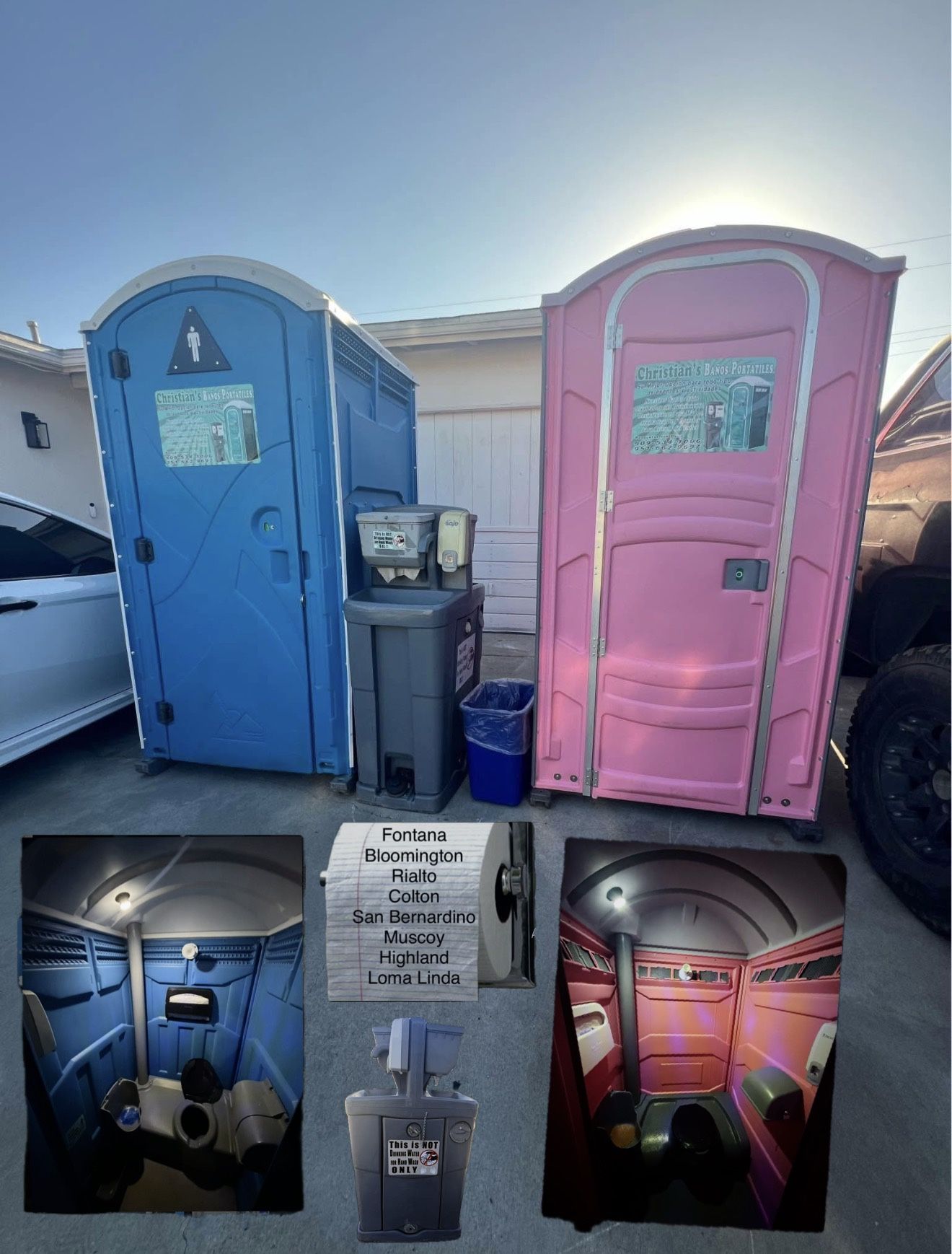 1 porta potty = 90$ 1 portable sink = 30$ 1 porta potty with a sink inside it = 110$ 2 porta potties 1 portable sink = 200$ 90$ un baño 30$ el lavamanos portátil 110$ un baño con el lavamanos adentro 200$ dos baños y el lavamanos portátil ☀️💡➕🔌💡 2-3 🧻 Seat cover paper Hand sanitizer dispenser Trash can Urinal with scented screen Blue deodorizer inside the tank Porta potty Porta potties Baños portátiles Portable toilets
