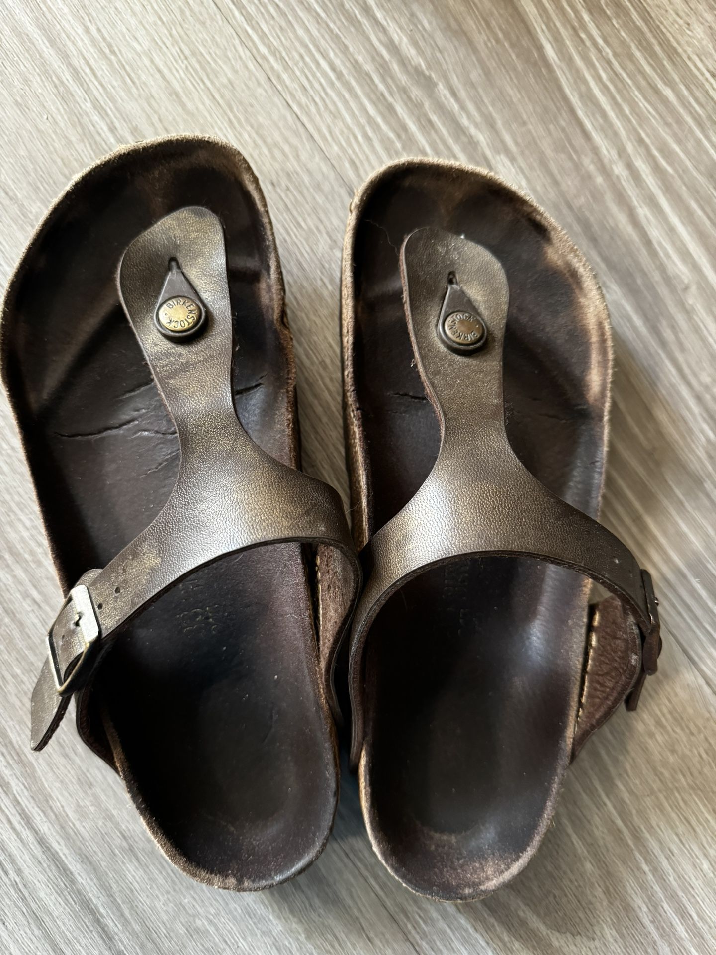 Well loved. 38 narrow Gizeh. Great for getting re-soled!