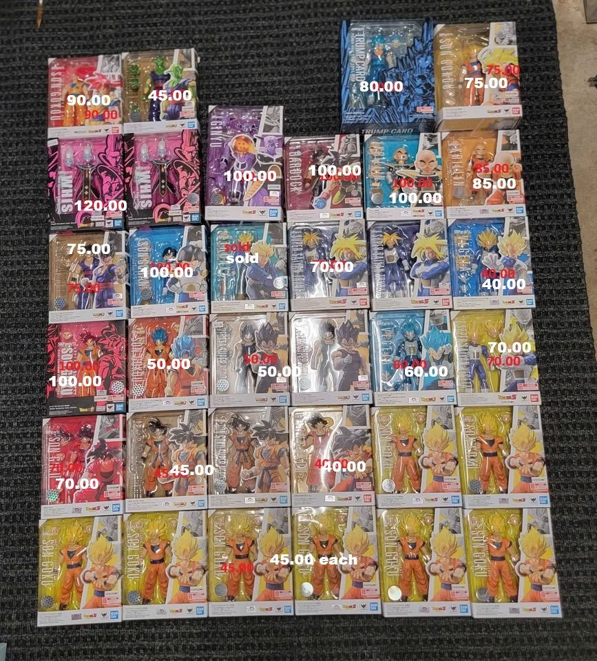 All Figures are open and Complete Selling off all my extra figures Sh Figuarts Dragon Ball Z Super Prices are on pictures Future Trunks Sold Prices range 35 to 150 per figure depending on which one I can do bundle deals if u buy more then 3 figures amd only 3 and above The whole lot I'm asking 1800.00