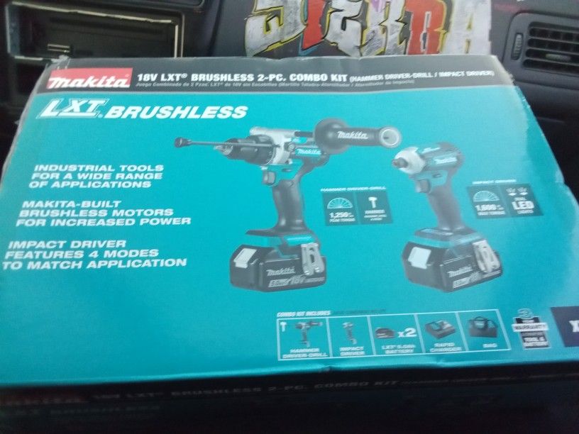 Makita 18v Lxt Brushless 2pc Combo Kit (Hammer Driver-dril/ Impact Driver) With 2- 5.0 Amphr Batteries And Charger With Contractor Bag