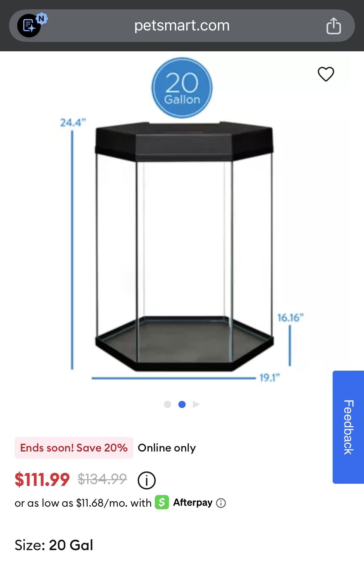 20-Gallon Glass Tank with Hood (hexagonal) Hood with convenient feeding hole LED lights 1 Top Fin Silenstream 20 Power Filter Sleek top design hides your filter Includes: 20-Gallon glass tank with hood LED Light 1 filter 8 Filter Cartridges 1 Net The tank was only used for 3 months and is in good condition. The only reason why I’m selling it is because my fish needed something bigger. It’s sold for $134.99 brand new. MUST PICK UP