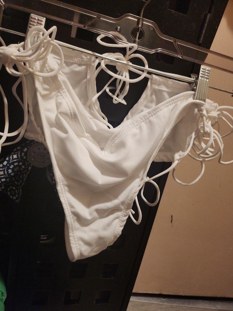 Brand new never been worn is this super cute, stretchy plus size bikini that you can string in a variety of ways. The top is actually in the triangle style, tied front & back. Let me know how it works for you!!