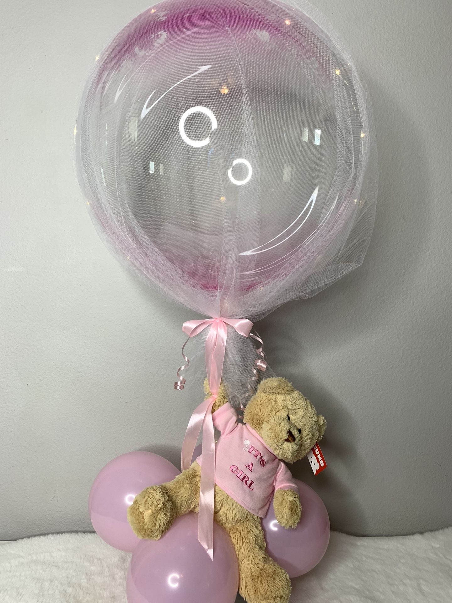 Great gift for a baby shower or to welcome baby into the world. Comes with LED lights, pink or blue teddy bear & one 20inch clear balloon. If you want a message on the balloon it’s extra. Deposit is required to place an order & need one week in advance. No deliveries, pick up in North hills. Any messages after 8pm will get a reply the next day. Thank you for viewing, check out my other offers.