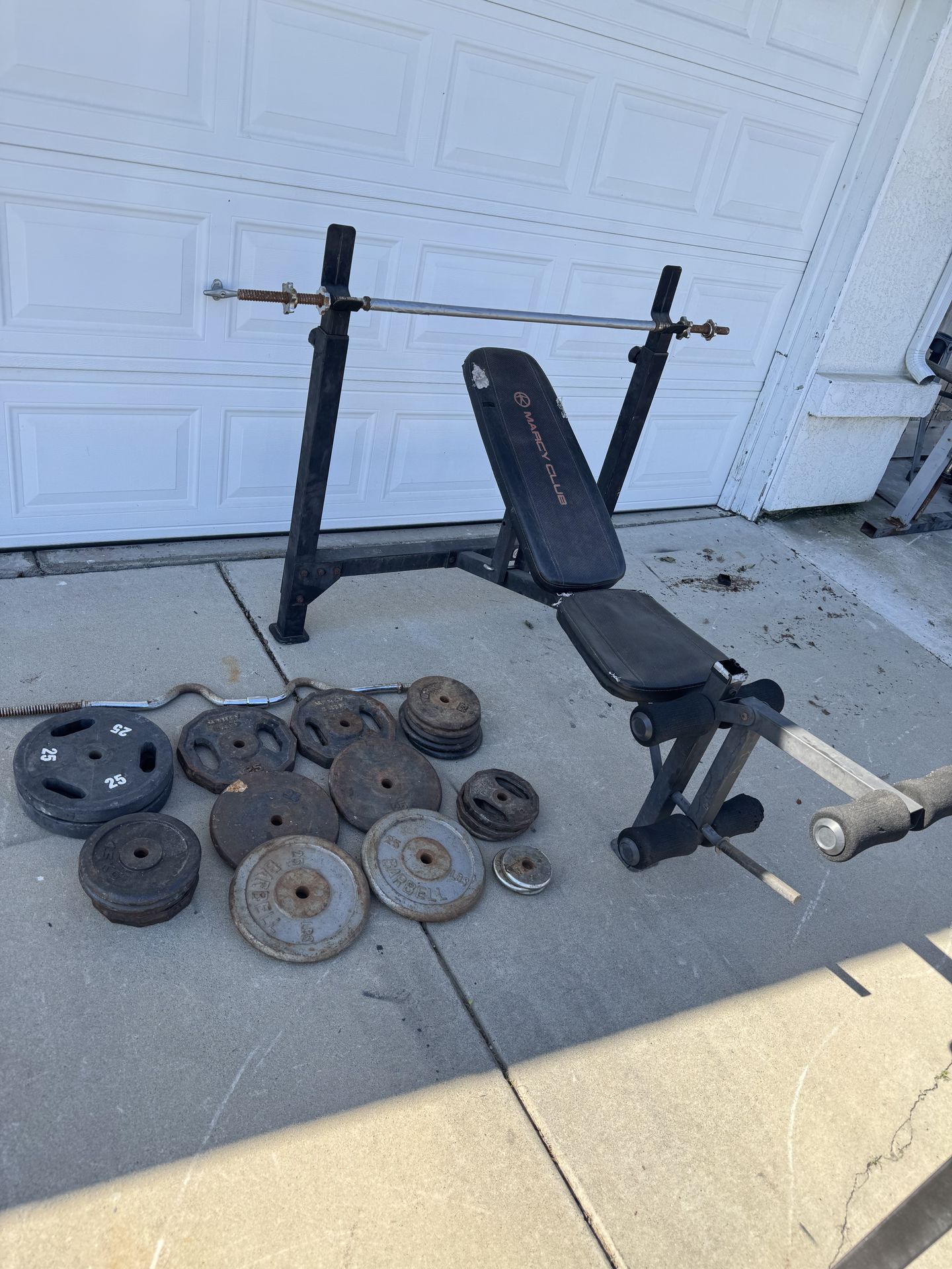 Weight Bench with 312.5LBS of standard weights, barbell and curl bar $220 Firm! I also have other equipment that’s not listed in this post CASH ONLY!! “WHATS THE LOWEST” WILL BE IGNORED!! No holds. Ignore: Weights. Weight. Gym. Exercise. Fitness. Workout. CrossFit. Barbells. Barbell. Dumbbells. Dumbells. Dumb bells. Kettlebell. Kettlebells. Squat rack. Bench press. Chest press. Strongman. Weightlifting. Lifting. Rogue Fitness.