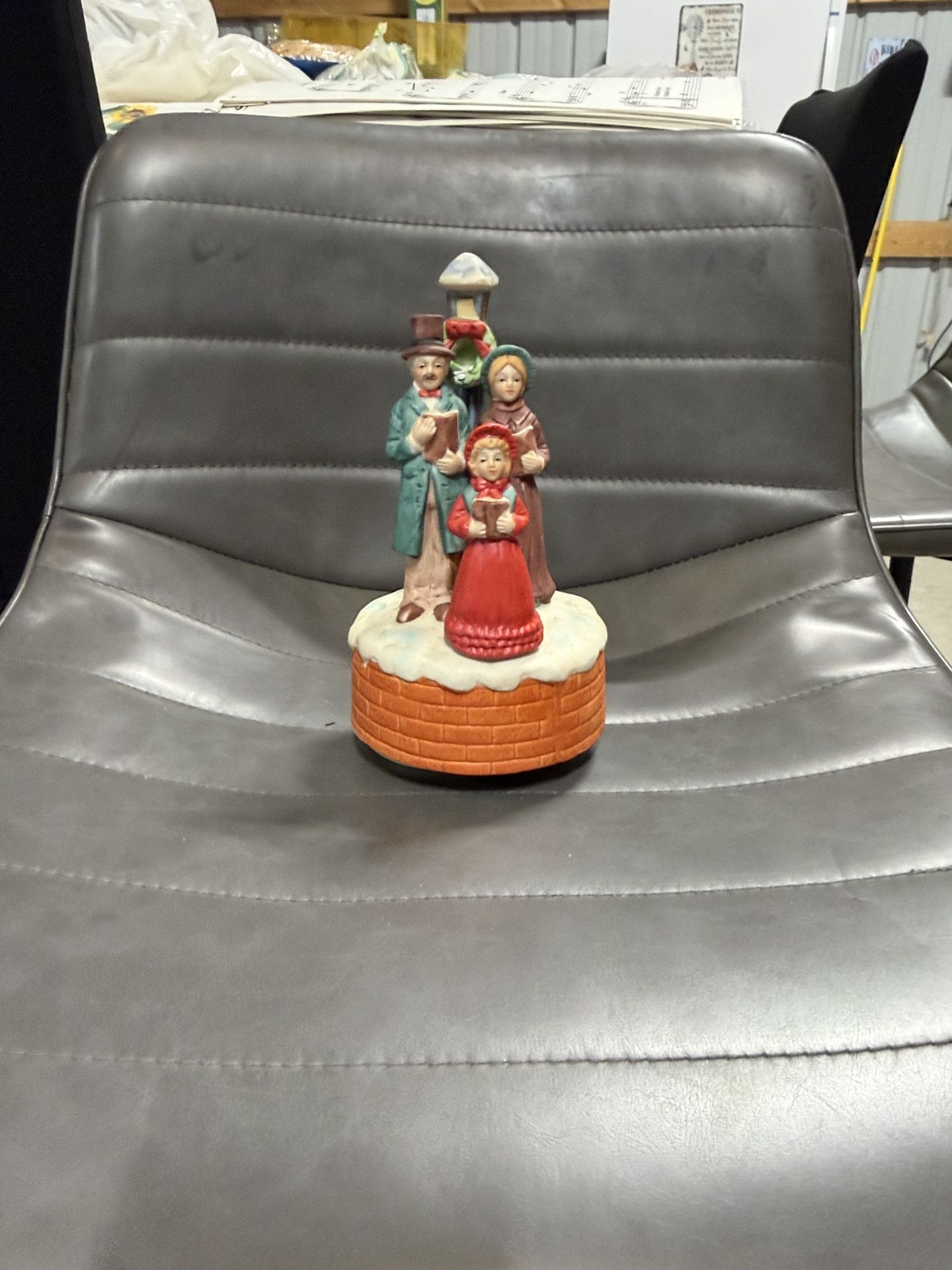 Vintage CHRISTMAS CAROLERS ☆ Revolving Musical Ceramic Figurine plays we wish you a merry Christmas