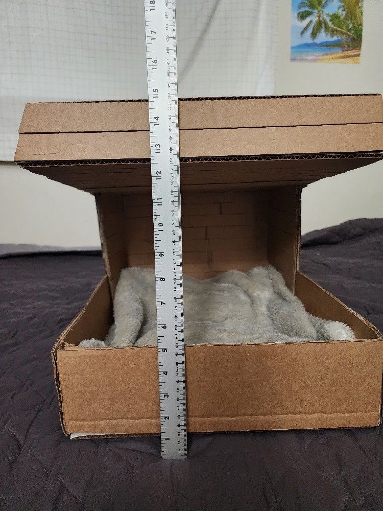 I kind of copied some guy off of youtube. The opening is pretty small, so best suited for a smaller size cat. No bedding included.