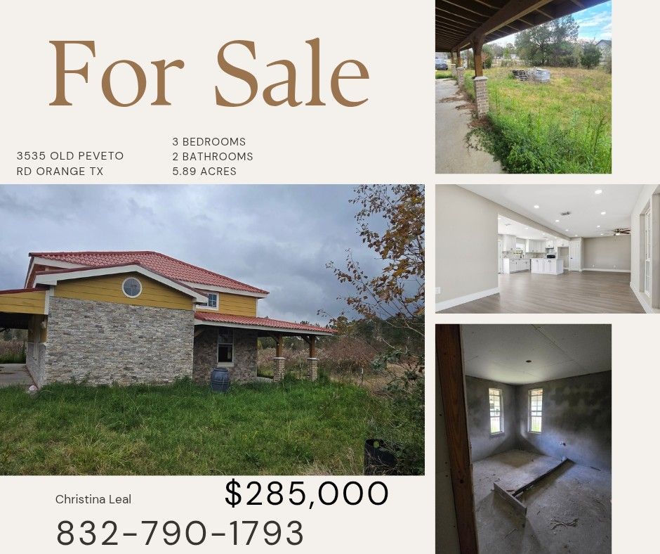 La casa no esta terminada por dentro construida de tabique/ ladrillo y piedra el terreno es de 5.89 acres no ay restricciones
