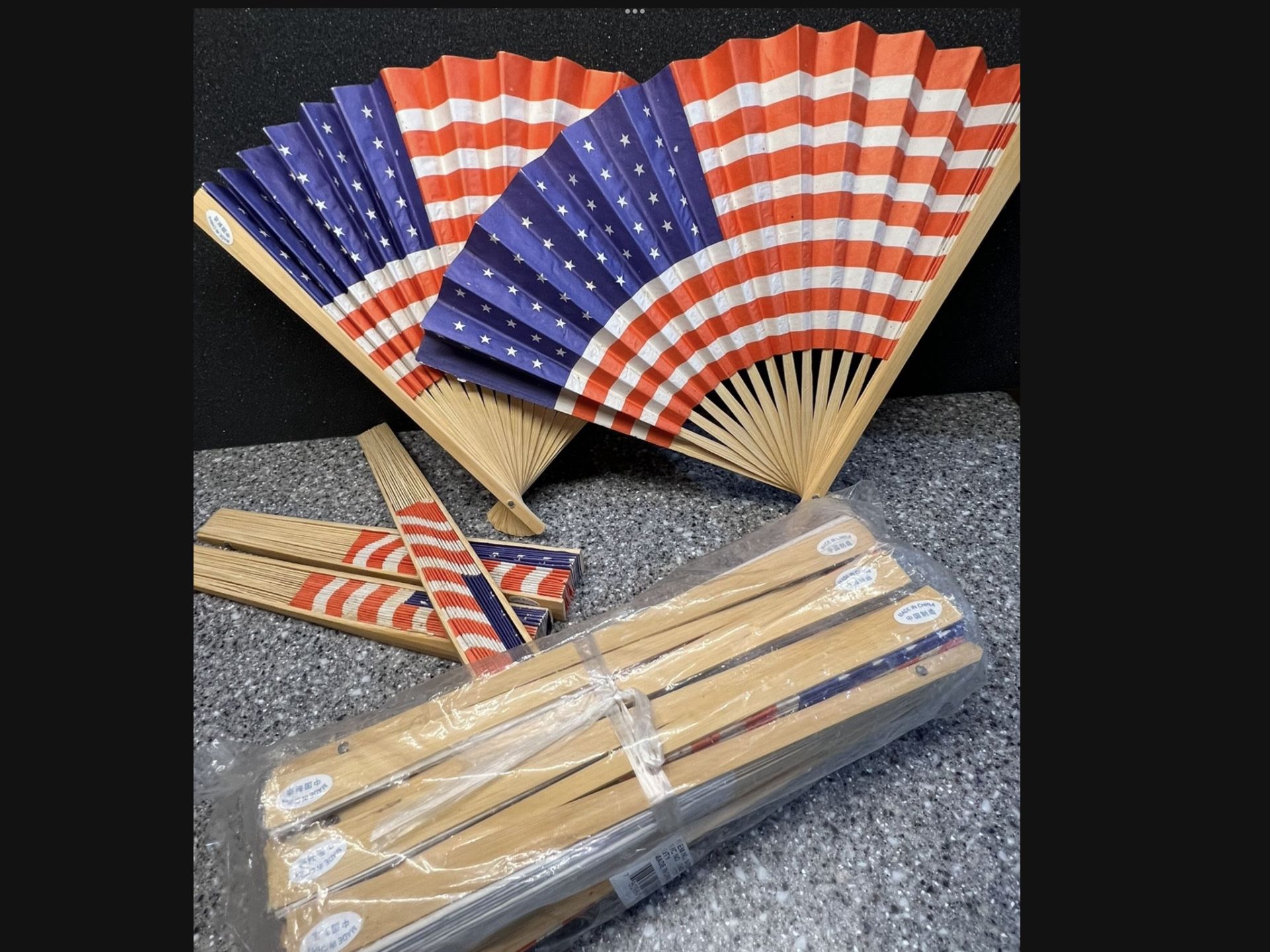 AMERICAN FLAG 10" HANDHELD FOLDING FLAG PAPER FANS W/WOODEN HANDLE / Pack Of 12 For $16.00