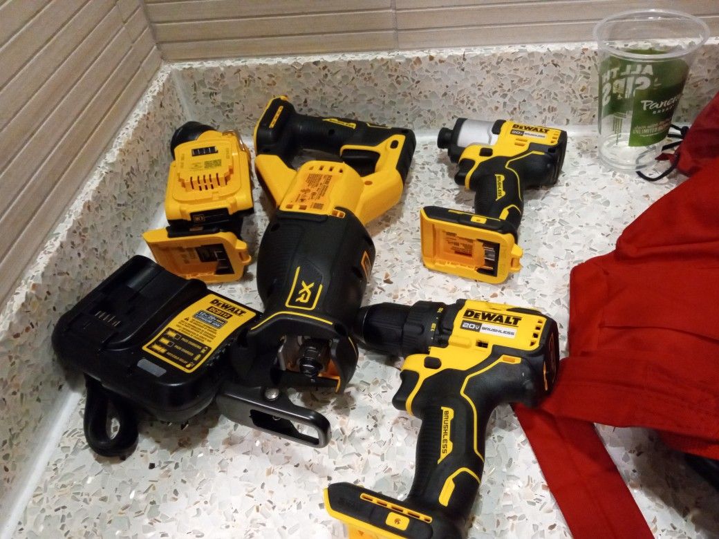 4 tools and 2 batteries with the charger included 20 v brushless . The tools are a sawzaw,impact,drill,flashlight .This same set at lowes is $450 ,im asking $175 if sold tonight...I switched tools Milwaukee. I