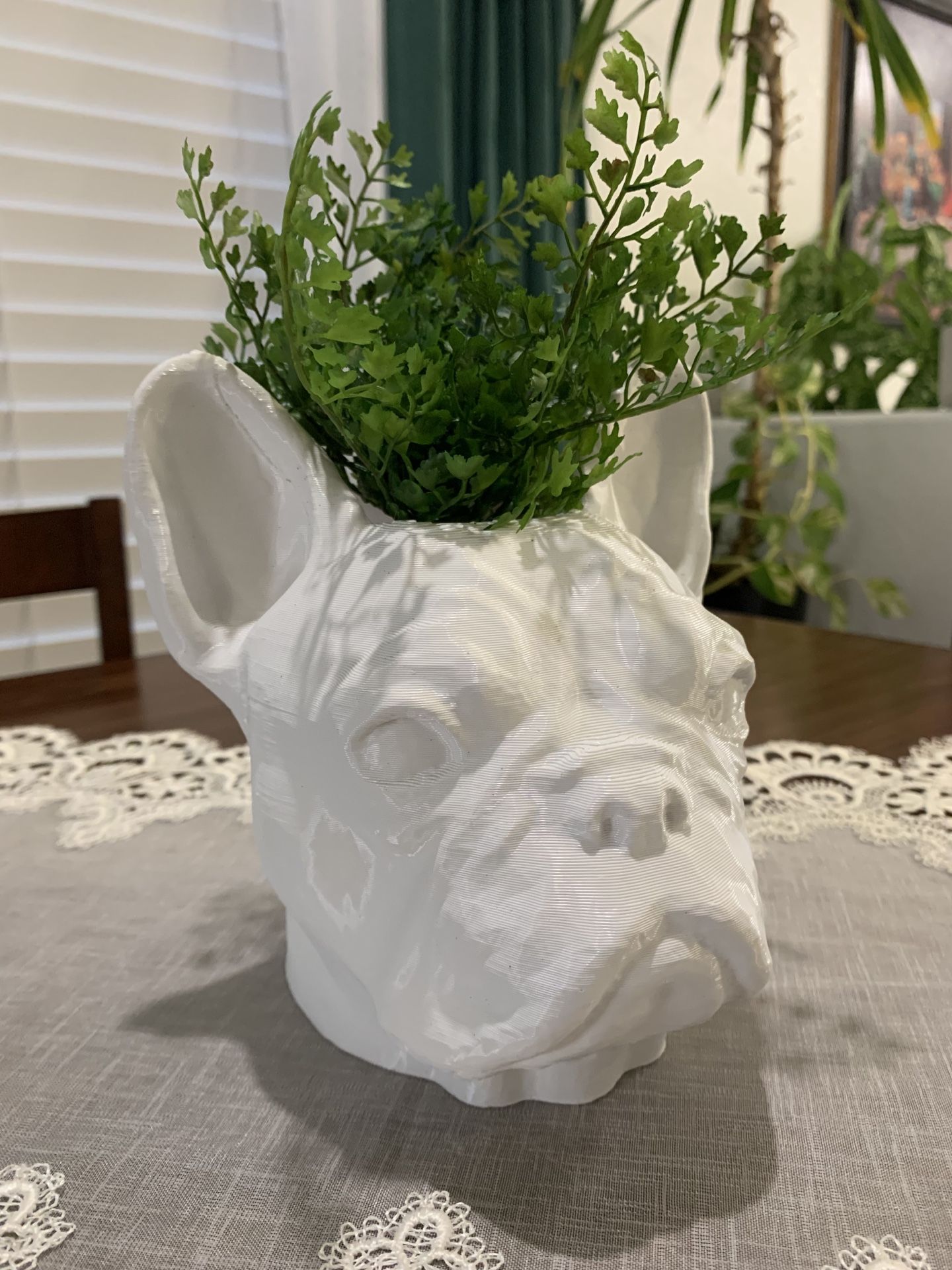 Looking for a beautiful way to show your love for your pet, or looking for a unique and special gift? Look no further than our Custom Pet Head Planters! Our planters are life size, and come pre-made in the shape of your pets head. This planter can be used in many ways, like a plant pot, toothbrush and toothpaste holder, pen or pencil holder, container, brush holder, make up holder - the possibilities are endless! Are planters are perfect for any dog lover or animal lover. It would also make an amazing and touching gift for anyone who has lost a pet. Our planters are exclusive to our shop, and are made with love and care. We know you will love our Custom Pet Head Planters as much as we do! ----------------------- Measurements: In inches: 7.0" H x 6.5" W x 7.0" L In cm: 17.78 H x 16.51 W x 17.78 L ----------------------- "Planters are 3D printed in ASA Filament." "Standard shipping included tracking number to USA and Canada and most Countries around the World" "Price is for one planter” "Plant is not included" "Please let us know for any customizations you would like" "Custom work prices may vary based on size and scale."