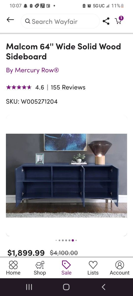 **** Small scratches **** Make a statement as you store spare server or any odds and ends with this distinctive sideboard. It's made from solid birch wood and features an inlaid retro-inspired chevron pattern on the front of the doors to add texture while creating shadows that bring dimension. The three doors open to reveal three adjustable shelves where you can keep your living or dining room essentials tucked away. Slim chrome-finished legs add shine to complete the overall look. Color: Navy | Mercury Row® Malcom 64" Wide Solid Wood Sideboard Wood in Blue, Size 31.0 H x 64.0 W x 18.0 D in |