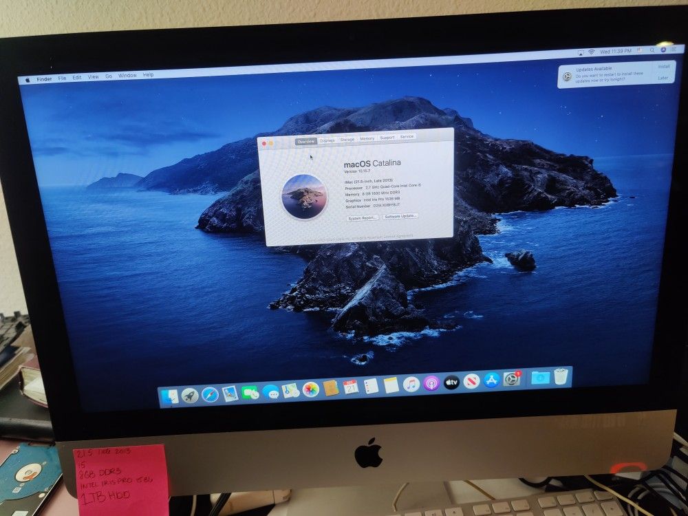 Apple Imac 21.5 Late 2013 Intel Core i5 @2.7Ghz, 8gb Ram, 1 TB Fusion Drive, MacOS Catalina, Microsoft Office Package. Apple Keyboard and Non apple Mouse.
