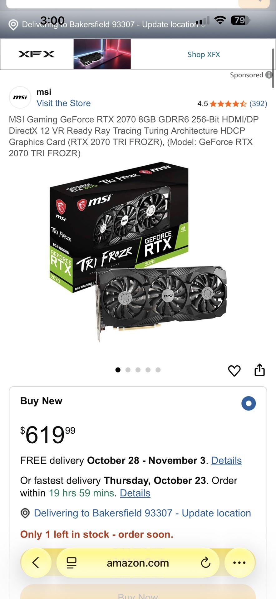 Tri Frozr MSI graphics card 2070 triple fan. Perfect condition. Selling because I upgraded my gpu. Perfected gaming card for your gaming pc. Absolutely nothing wrong with it.