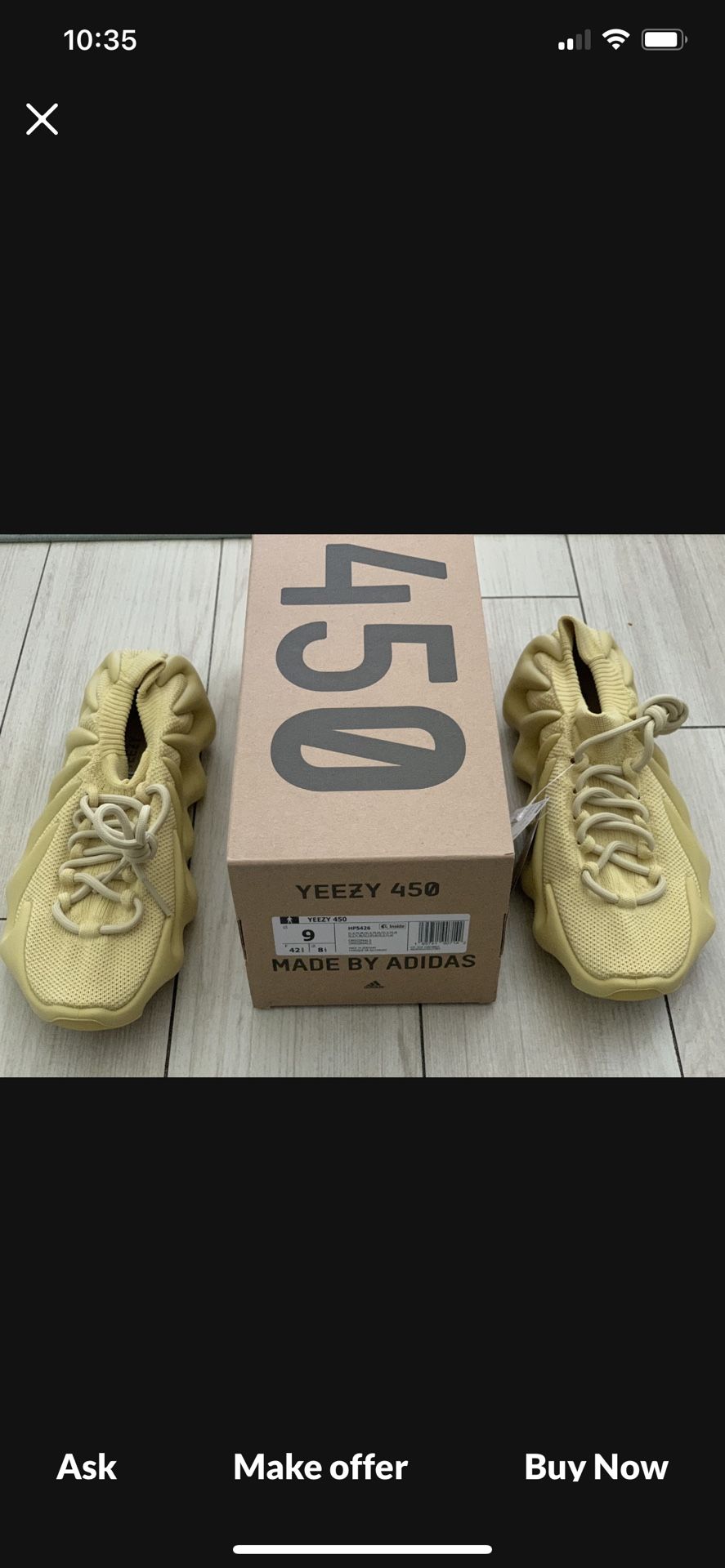 Adidas Yeezy 450 Sulfur Sz 9 Brand new with box and tags Pick up only