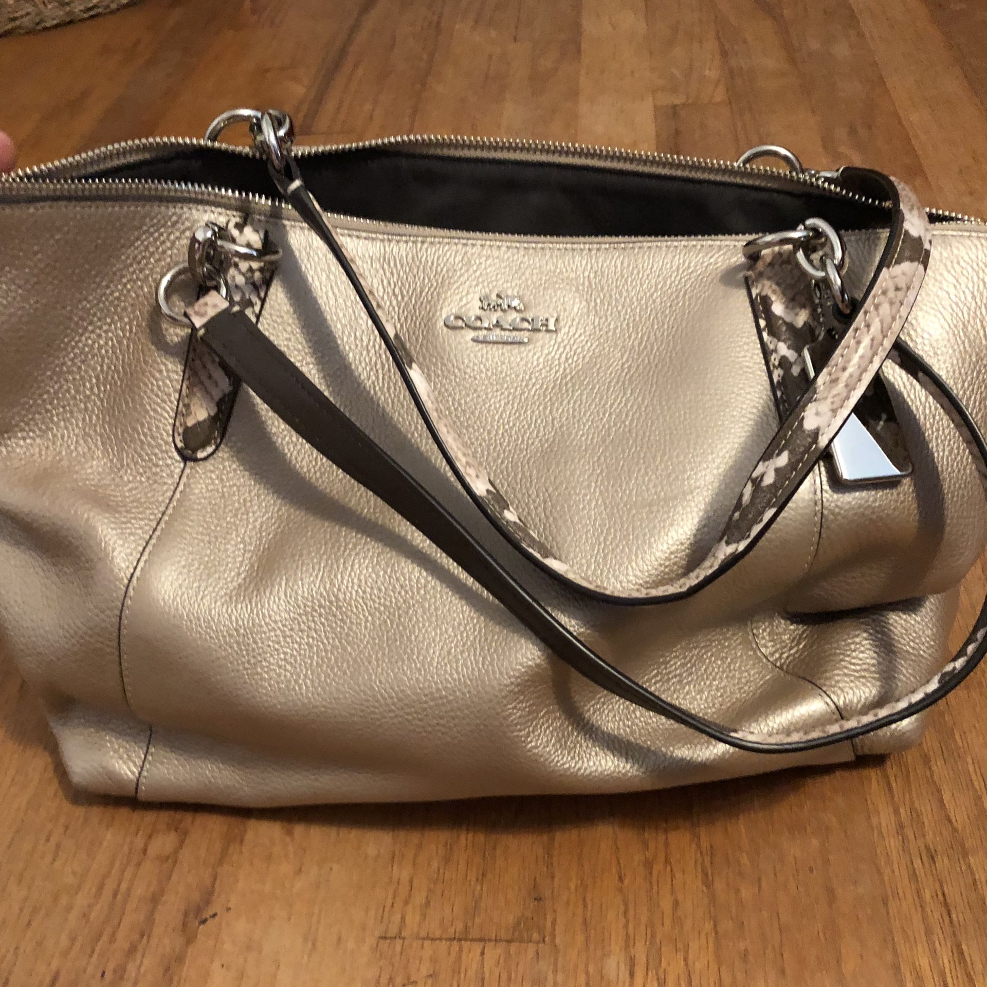 COACH sheer tan/silver with snakeskin straps