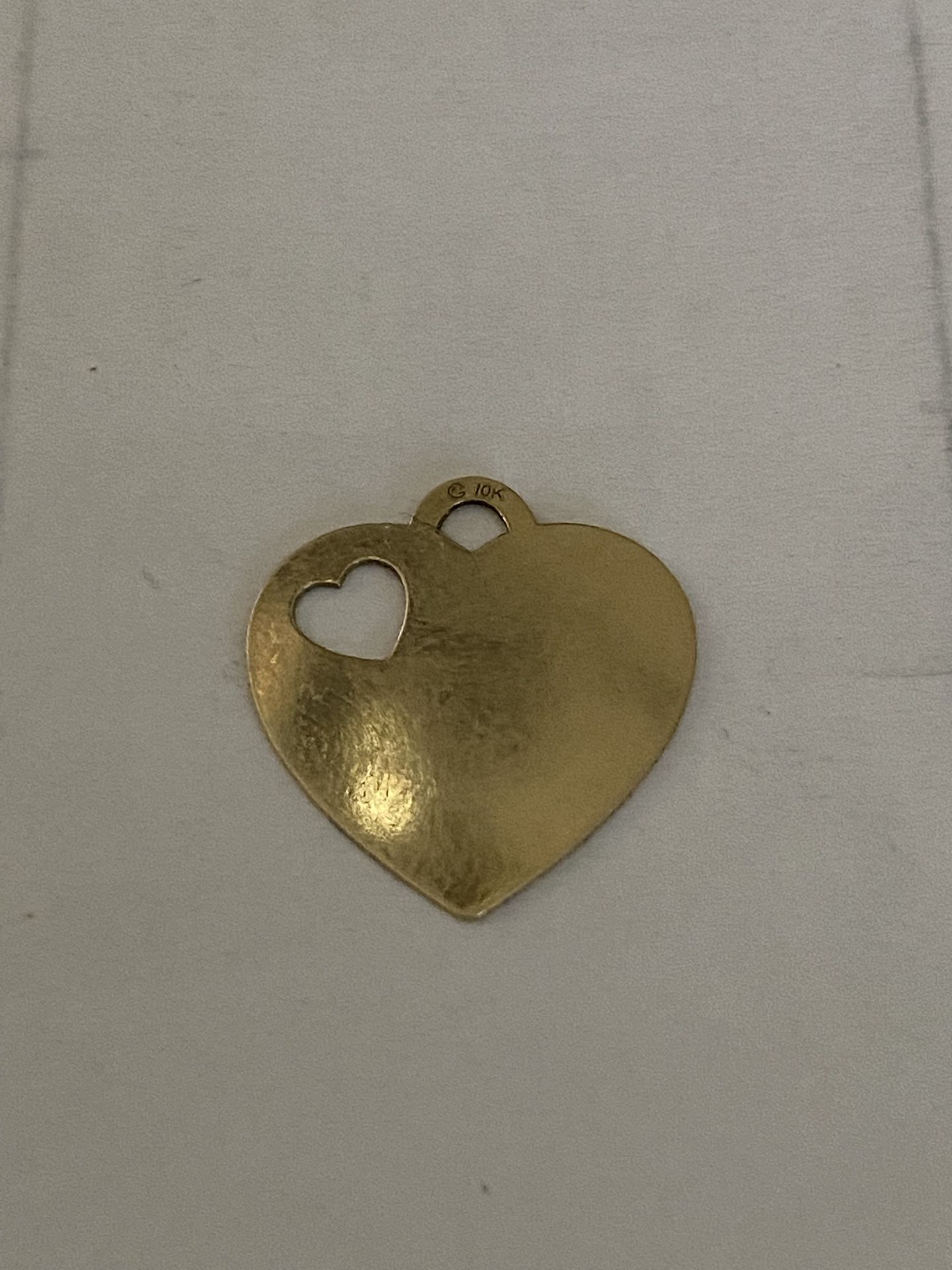 10K GOLD HEART in pictures you see size next to the dime also marked 10K at top. It has a small heart in heart this goes on a bracelet or chain will look beautiful either way. It weights .78g of 10K Gold for $50.00 firm. FCFS PICK UP ONLY area of North Glendale 51st ave & Union Hills