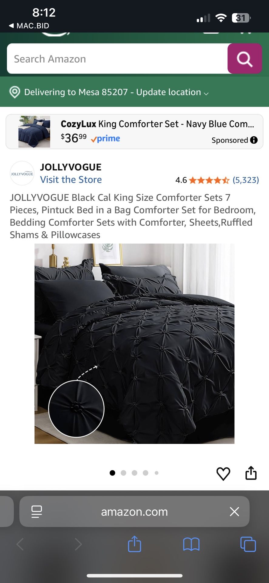JOLLYVOGUE Cal. King Black Pintuck Comforter Set