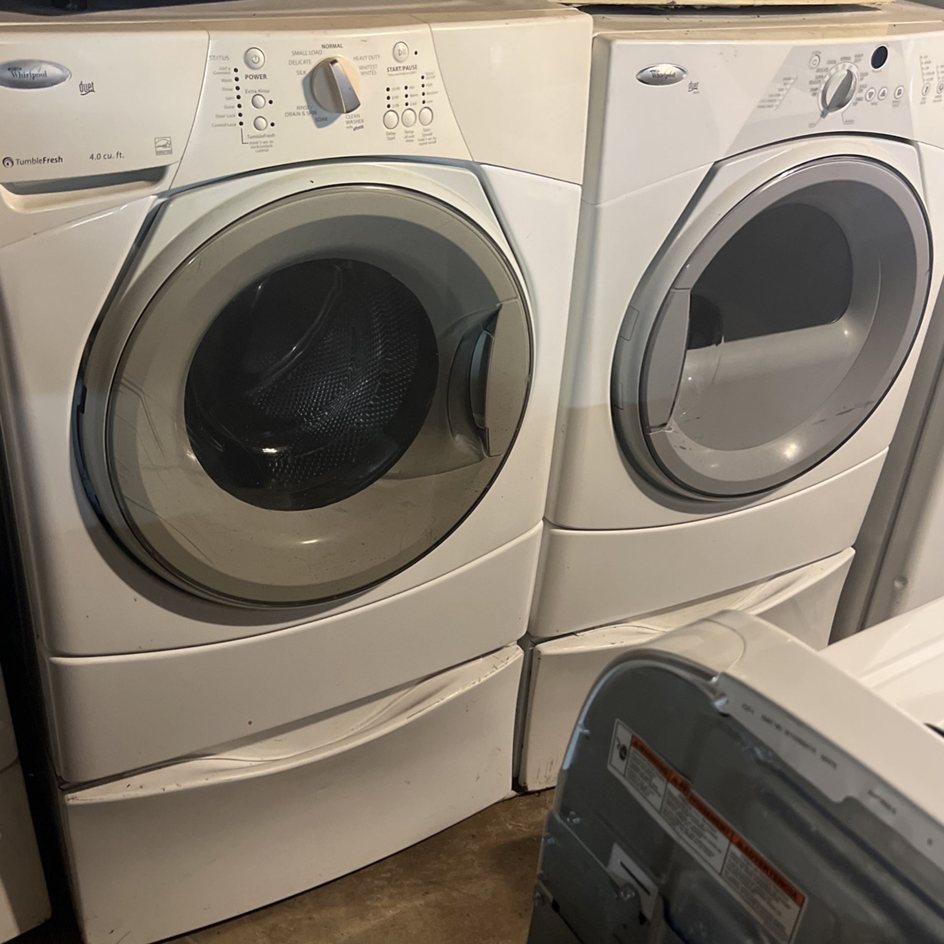Frontload on Barestool Whrpool, washer and dryer