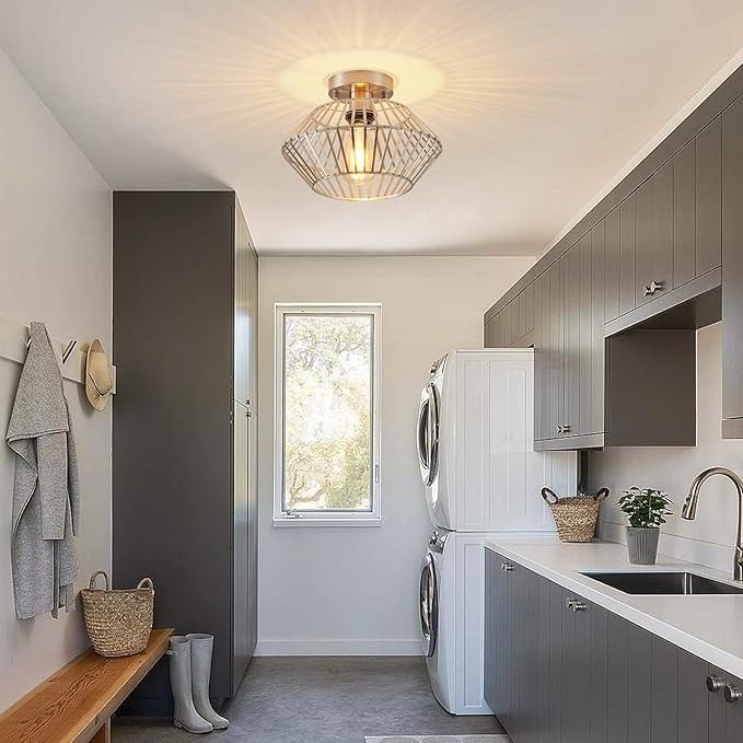 SGLfarmty Industrial Semi Flush Mount Light Metal Ceiling - Fixture, Hallway, Entryway, Bathroom, Bedroom Light, Brushed Nickel Beautiful metal hallway ceiling light. Brand new in box never opened. Come check it out.