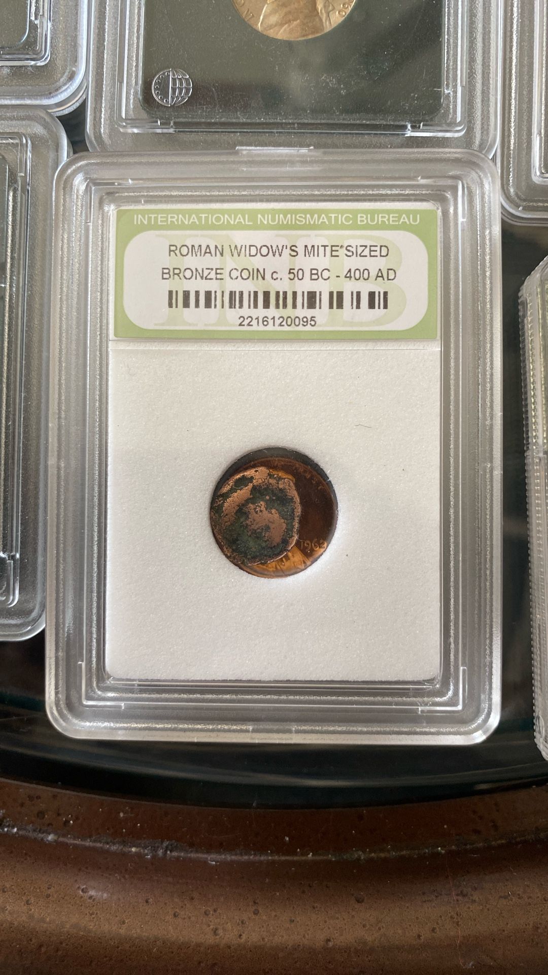 This Roman Widow’s Mite-sized bronze coin is a rare and intriguing piece from ancient history. Often associated with the biblical story of the Widow’s Mite, it features simple, symbolic designs and offers a unique glimpse into everyday life in the Roman Empire. A valuable addition for collectors of ancient coins.