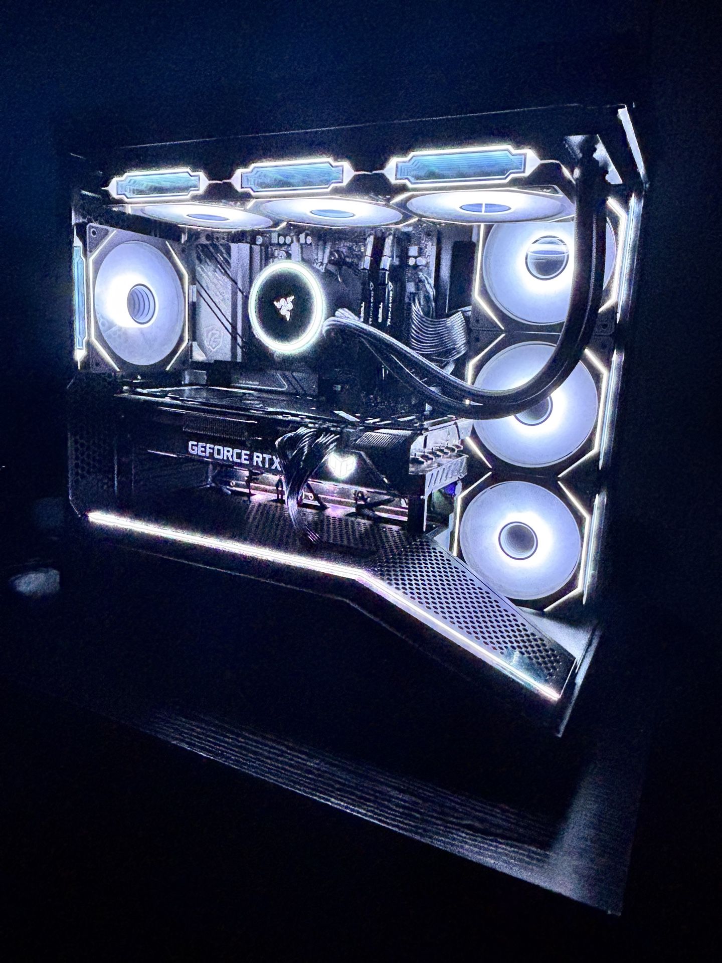 Selling a nice gaming pc . Let me know if you have any questions! Specs: Gpu: ASUS TUF Gaming 3070 Ti OC Cpu: Ryzen 7 5700 Motherboard: ASRock b550m PG riptide Ram: 2x16gb G.Skill Ripjaws V DDR4 Ssd: 1TB Inland SSD Aio: Razer Hanbo Chroma RGB Psu: GameMax 750W Modular Case: Lian Li VECTOR V100 MINI Windows 11 pro is also installed and activated! Send me a offer!