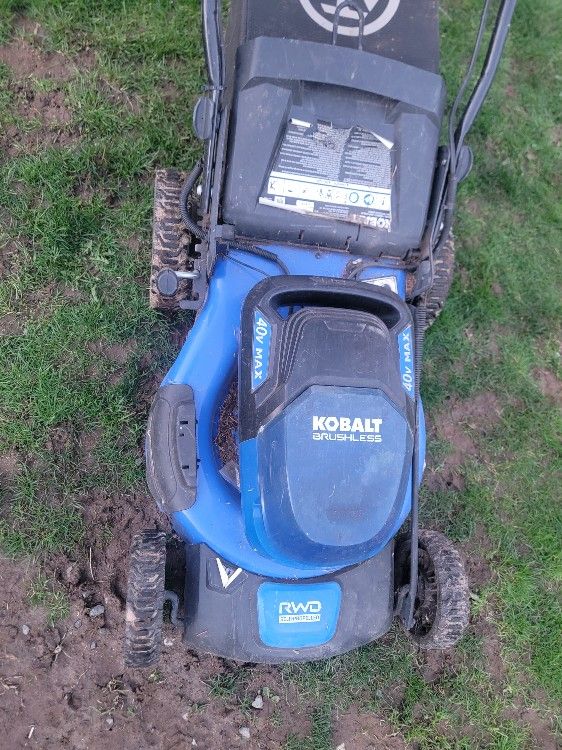 Kobalt battery powered lawn mower. Includes two batteries and the charger. In good working condition. We are moving and no longer need it.