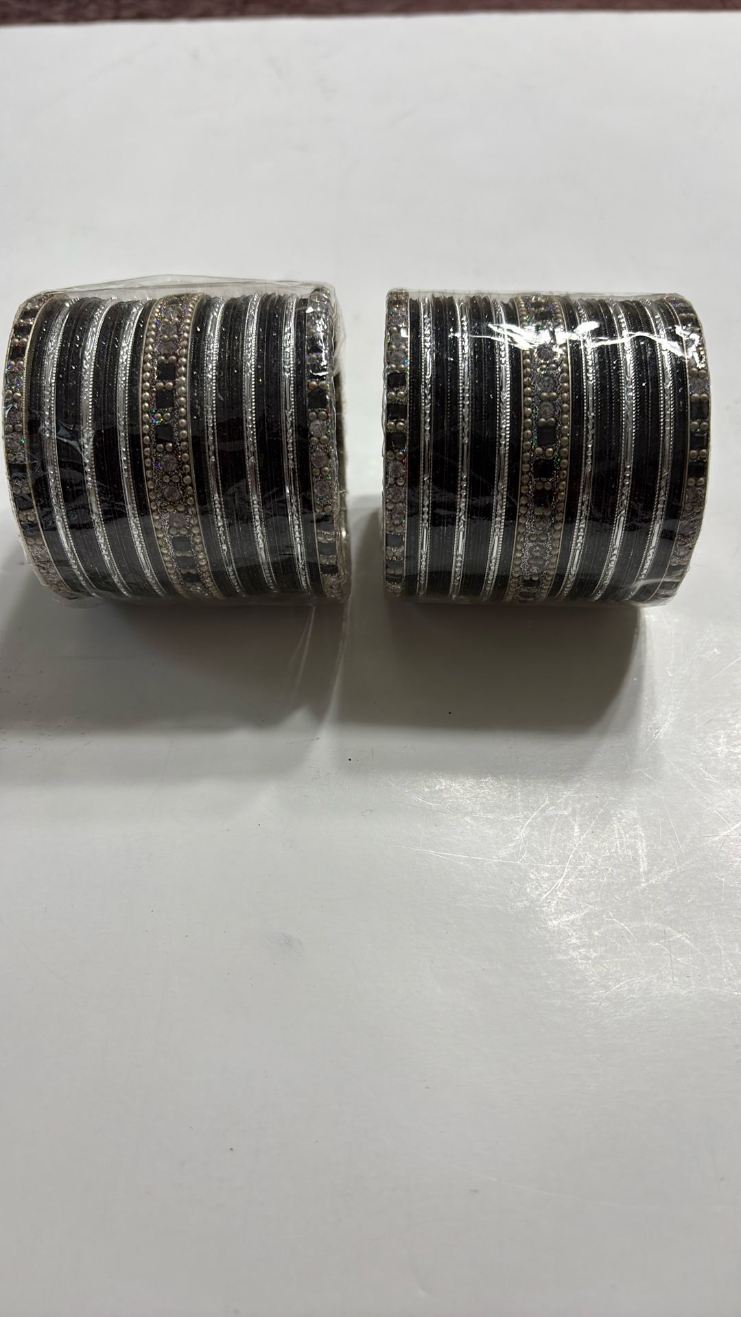 Indian bangles, metal and rhinestones. Perfect for special occasions like parties, engagement, wedding, prom or gifting. Set of 2. Inner diameter 2.2 inches.