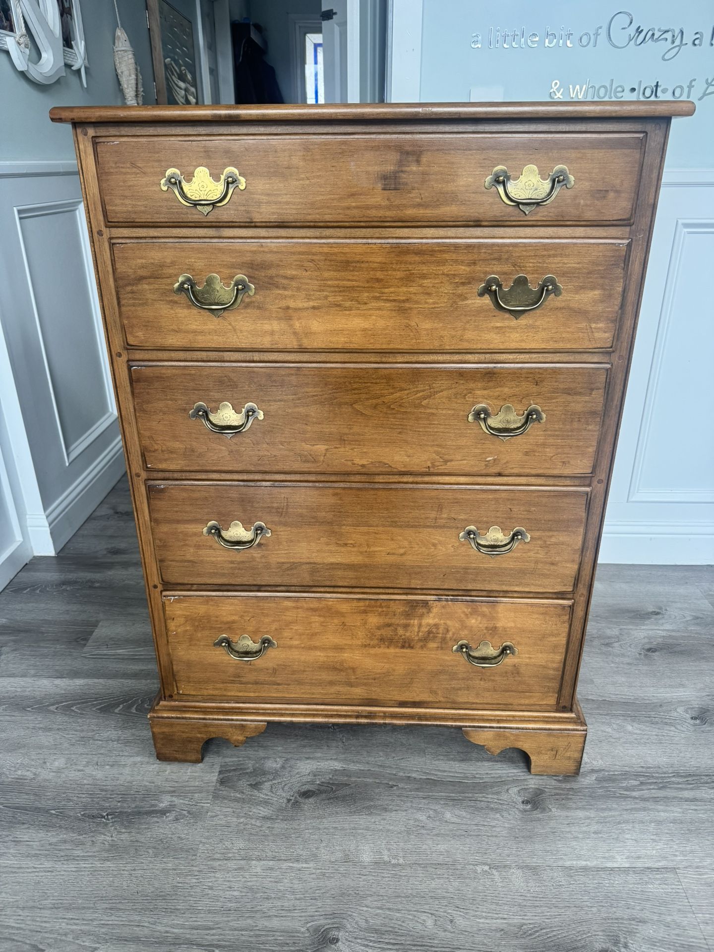 Ethan Allen Early American Solid Wood 5-Drawer Highboy Dresser