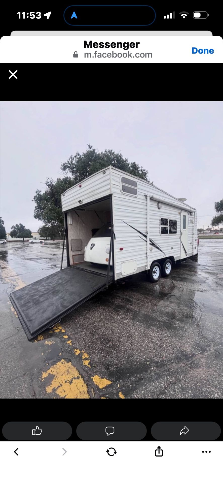 Description is in one of the pictures thanks so much. It's a great toy hauler. Just bought it a couple months ago. Bought a 40 foot RV so it's got to get out of my storage.