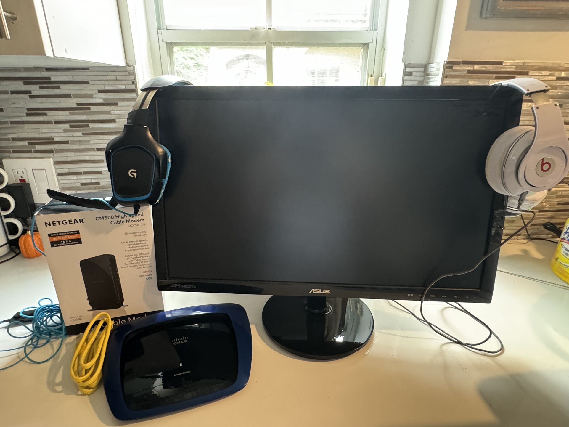 Selling them altogether or separately. 1. Asus monitor (hdmi/dvi/vga) 2. Netgear Modem CM500 3. Cisco Router - Linksys E3000 4. Logitech Headset G430 5. Beats Headphones Monster (cushions need replacements) Send me an offer!
