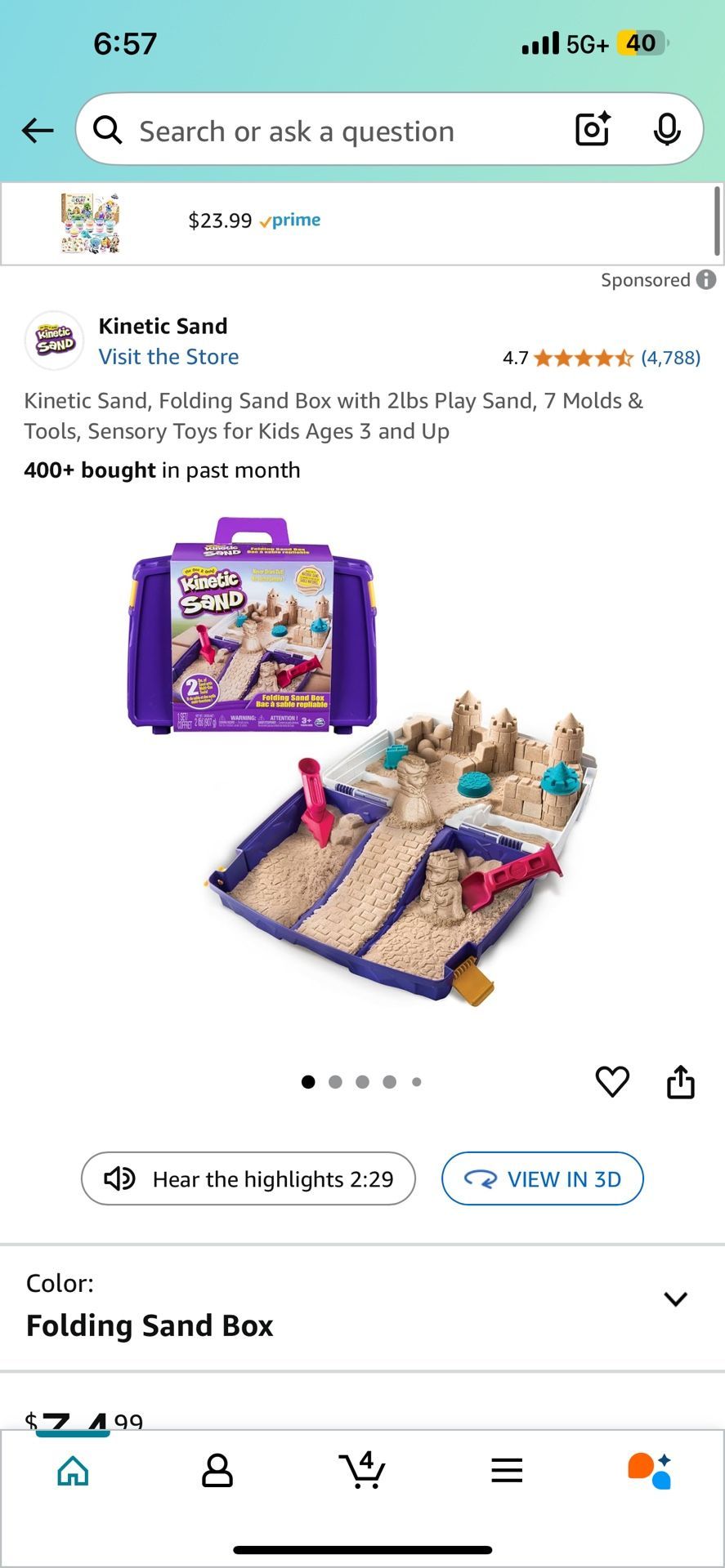 Kinetic Sand, Folding Sand Box with 2lbs Play Sand, 7 Molds & Tools, Sensory Toys for Kids Ages 3 and Up