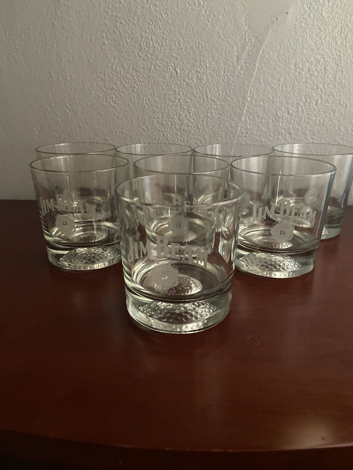 Jim Beam Etched, Golf Ball Imprinted on the Bottom Tumblers (8)
