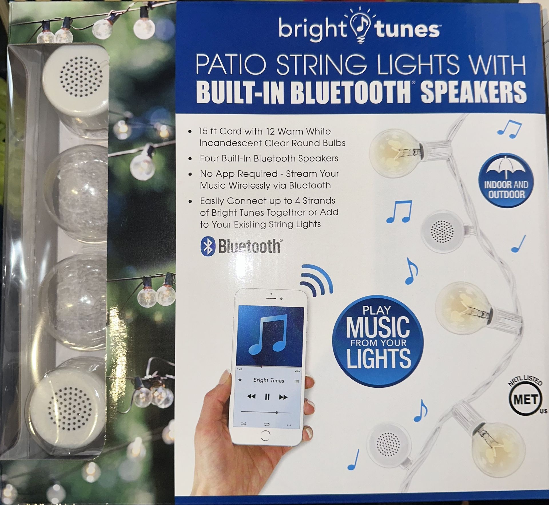 Indoor Outdoor Lights With Built In Speakers 15ft Cord