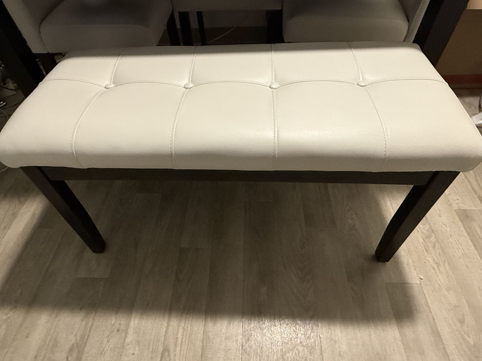 Beautiful modern dining set featuring a white marble-look tabletop with dark legs. Includes 4 cream upholstered chairs and a matching cushioned bench. Clean, contemporary design Comfortable seating Great for apartments, small dining areas, or breakfast nooks Neutral colors match any décor In good condition. Minor normal wear from use but overall very well kept. Selling due to moving / updating furniture. Message me if interested! Serious inquiries only please. Cash Only! Must Pick-Up