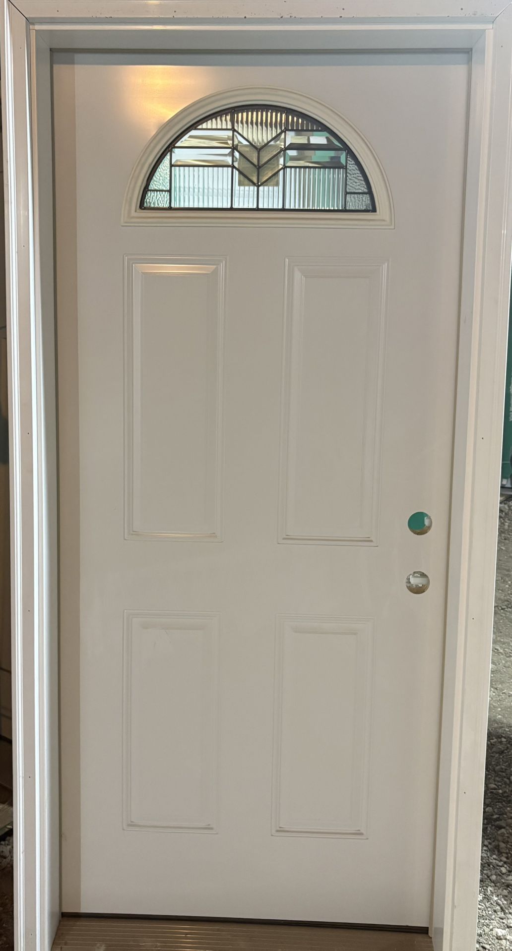 New 36x80 Steel Exterior Door, Decorative Glass, 6.5” Jamb