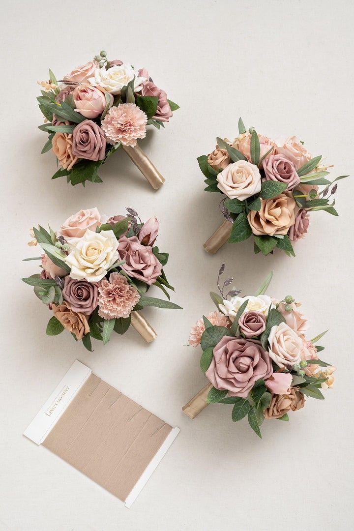 Ling's Moment - Dusty Rose and Cream Bridesmaid Bouquets and Boutonnieres